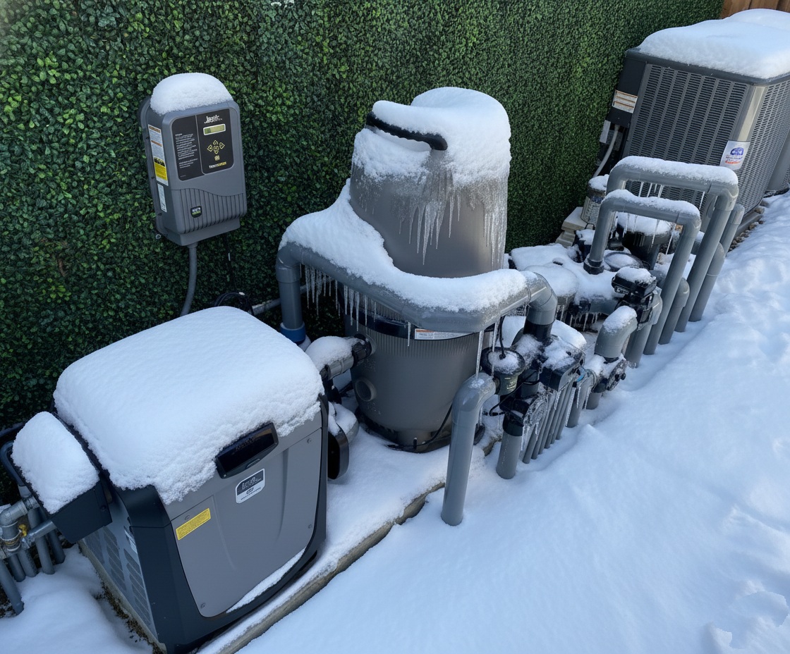 In North Texas, our “winter” can range from a light frost to a deep, multi-day freeze like we saw in 2021. Because most pools here are not fully winterized (drained and plugged), they rely on moving water to prevent ice from forming and cracking expensive equipment. Below are some guidelines that may help prevent or reduce pool damage during freezing temperatures.